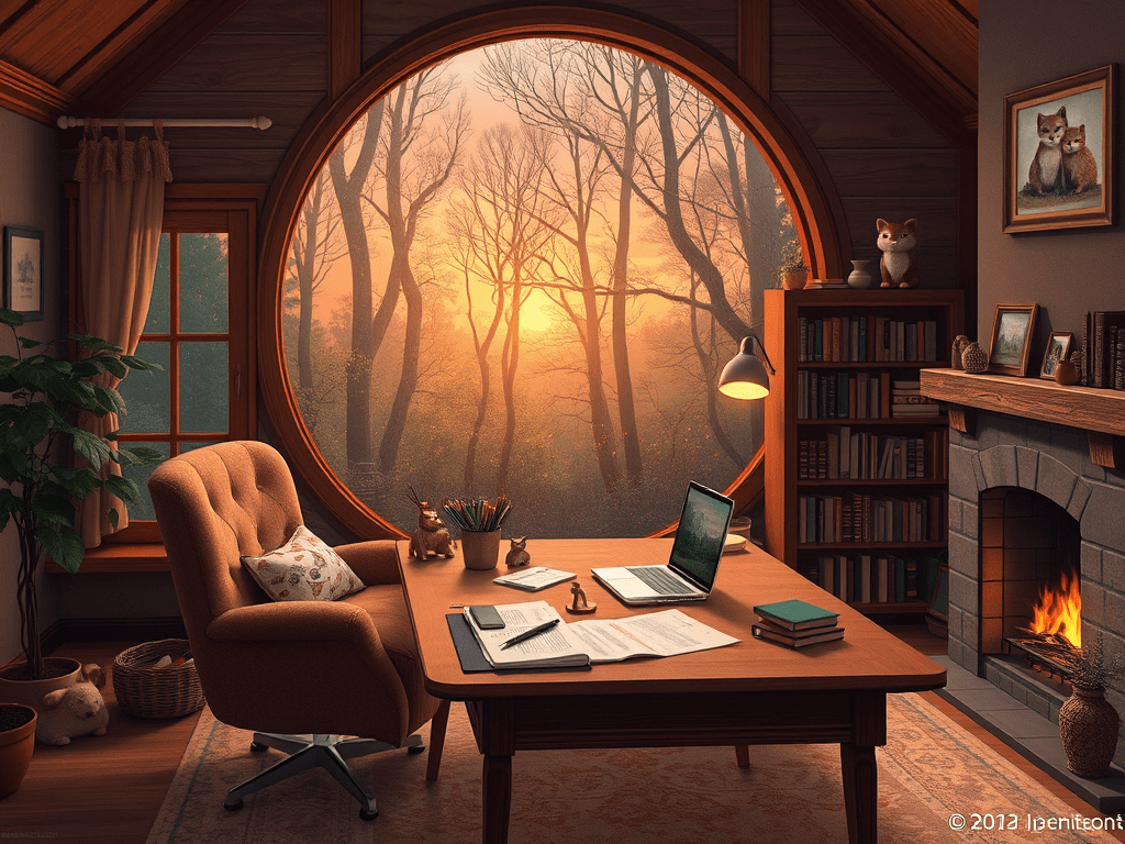 But ultimately, because my brain is most active late afternoon/early evening, sunset needs to feature for me. I chose the 4 pictures below as possible dreamy writing study rooms. They are all extremely appealing to me. Which would you choose? 💻